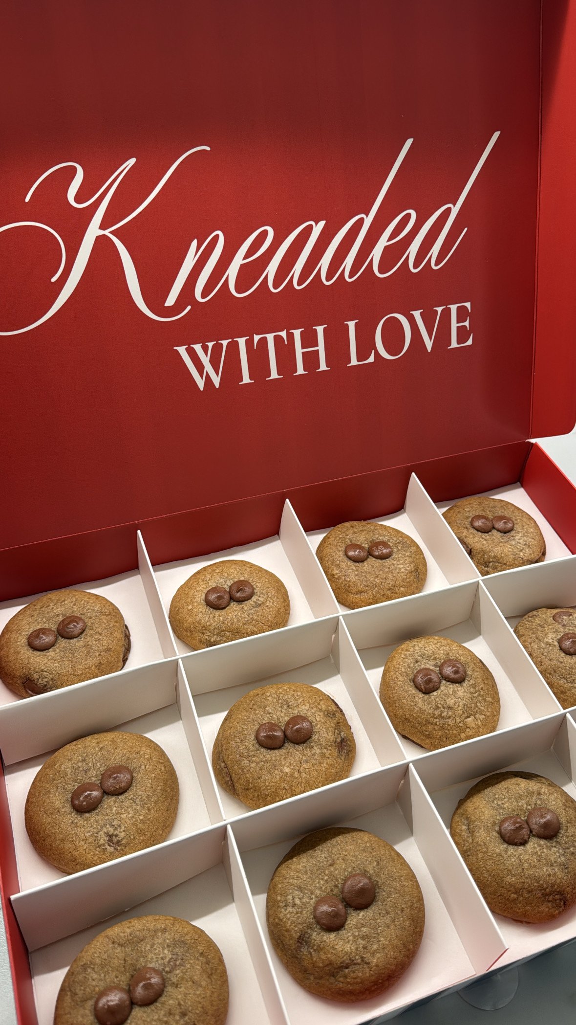 A box of 12 classic chocolate chip cookies, baked golden with soft centers, crisp edges, and plenty of melty chocolate in every bite. Perfect for sharing, gifting, or enjoying yourself.